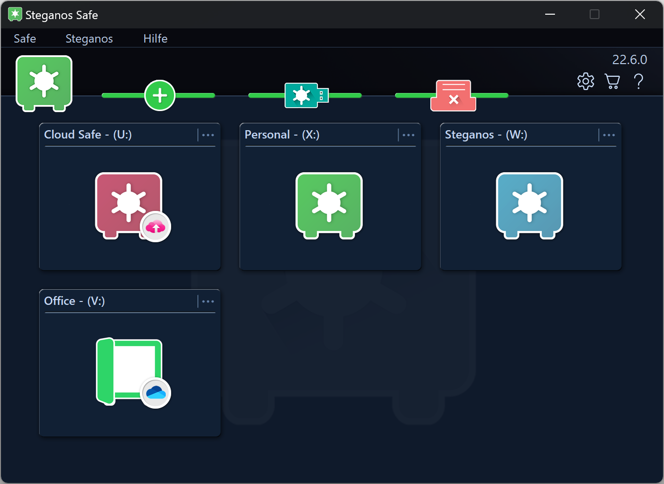 Secure your Safes with TOTP 2-Factor-Authentication, using popular apps like e.g. Authy, Microsoft Authenticator or Google Authenticator as a second factor.Huge securely encrypted containers